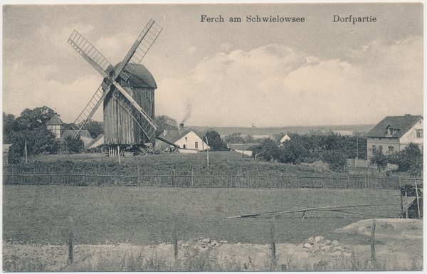 Text auf der Karte: Ferch am Schwielowsee Dorfpartie Entstehungszeit der Karte: ca. 1915 Kartenart: Ansichtskartenvorlage 13x18 Kartentechnik: SW-Litho Verlag: Verlag Hugo Beyer, Caputh Gelaufen/ungelaufen: ungelaufen Zustand (I=sehr gut bis V=mangelhaft): I Häufigkeit (h=häufig bis rrr=sehr selten): h