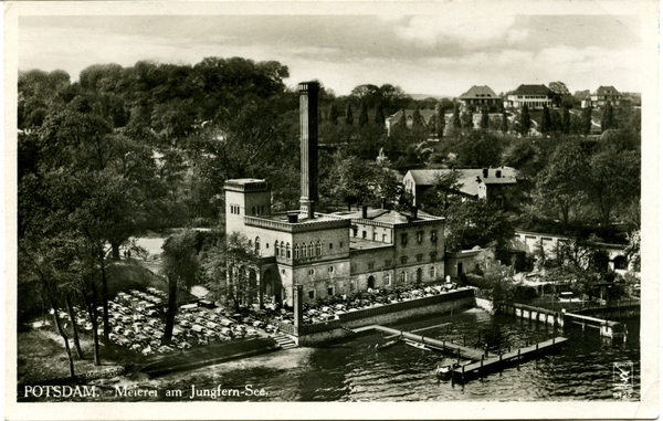Text auf der Karte: POTSDAM. Meierei am Jungfern-See. Entstehungszeit der Karte: gestempelt 05.09.1959 (Karte ca. 1935) Straße und Hausnummer: Neuer Garten Kartenart: Ansichtskarte Kartentechnik: SW-Foto Verlag: Industrie=Fotografen Klinke & Co., Berlin SW 29, Flughafen Gelaufen/ungelaufen: gelaufen Zustand (I=sehr gut bis V=mangelhaft): I Häufigkeit (h=häufig bis rrr=sehr selten): h Heutige(r) Straßenname(n): Im Neuen Garten