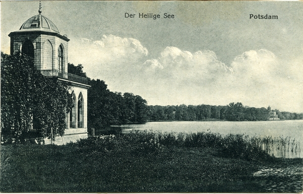 Text auf der Karte: Potsdam Der Heilige See (Gotische Bibliothek) Entstehungszeit der Karte: ca. 1915 Straße und Hausnummer: Neuer Garten Kartenart: Ansichtskarte Kartentechnik: SW-Litho Verlag: Kunstverlag J. Goldiner, Berlin C. 25 Orig.-Aufn. Aorit, Berlin Gelaufen/ungelaufen: ungelaufen Zustand (I=sehr gut bis V=mangelhaft): I Häufigkeit (h=häufig bis rrr=sehr selten): rr