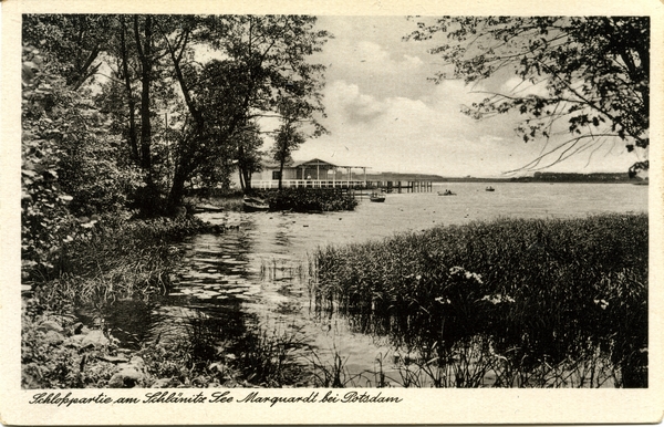 Text auf der Karte: Schloßpartie am Schlänitz See Marquardt bei Potsdam Rückseitig: W. Nentwig - Tel. Fahrland 110 Bäckerei/Kolonialwaren/Gastwirtschaft Marquardt bei Potsdam Entstehungszeit der Karte: ca. 1935 Kartenart: Ansichtskarte Kartentechnik: SW-Foto Verlag: M/1294 Gelaufen/ungelaufen: ungelaufen Zustand (I=sehr gut bis V=mangelhaft): I Häufigkeit (h=häufig bis rrr=sehr selten): h