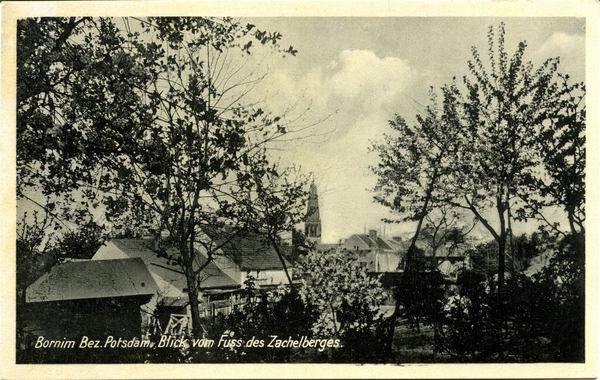 Text auf der Karte: Bornim Bez. Potsdam, Blick vom Fuss des Zachelberges