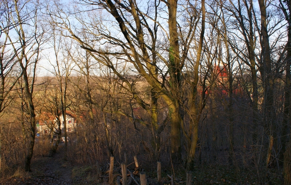 Text auf der Karte: Panorama von Golm (Wildpark)Aufnahmedatum des Vergleichsfotos: 16.12.2013© Copyright des Fotografen: Helmut MatzKarten-Nr. bei GrussAusPotsdam.de: 128