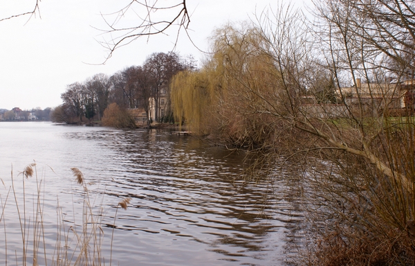 Text auf der Karte: Durchblick v. Bürgershof auf PotsdamAufnahmedatum des Vergleichsfotos: 16.04.2013© Copyright des Fotografen: Helmut MatzHeutige(r) Straßenname(n): WaldmüllerstraßeKarten-Nr. bei GrussAusPotsdam.de: 2.895