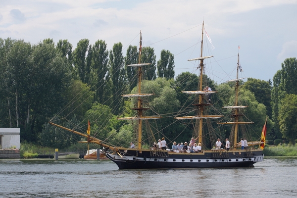 Text auf der Karte: Königliche Fregatte Royal Louise auf dem Jungfernsee bei PotsdamAufnahmedatum des Vergleichsfotos: 31.07.2016© Copyright des Fotografen: Helmut MatzKarten-Nr. bei GrussAusPotsdam.de: 245