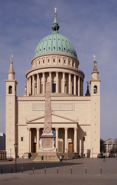 Text auf der Karte: Potsdam. NikolaikircheAufnahmedatum des Vergleichsfotos: 27.02.2018© Copyright des Fotografen: Helmut MatzHeutige(r) Straßenname(n): Am alten MarktKarten-Nr. bei GrussAusPotsdam.de: 2.448