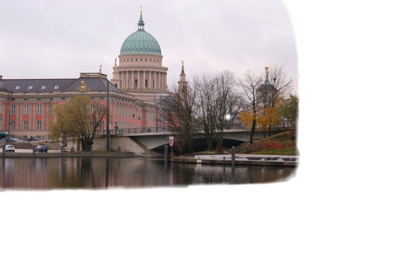Text auf der Karte: POTSDAM Stadtschloss (signiert TvE)Aufnahmedatum des Vergleichsfotos: 21.11.2013© Copyright des Fotografen: Helmut MatzKarten-Nr. bei GrussAusPotsdam.de: 2.147