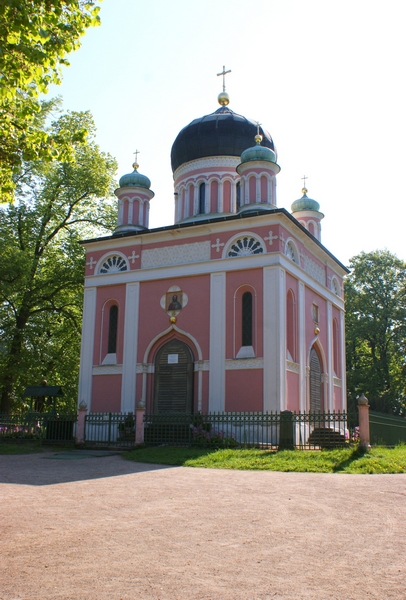 Text auf der Karte: Potsdam. Russische Kapelle.Aufnahmedatum des Vergleichsfotos: 13.05.2013© Copyright des Fotografen: Helmut MatzHeutige(r) Straßenname(n): Russische KolonieKarten-Nr. bei GrussAusPotsdam.de: 1.356