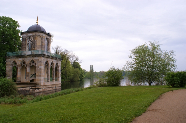 Text auf der Karte: Potsdam Der Heilige See (Gotische Bibliothek)Aufnahmedatum des Vergleichsfotos: 09.05.2013© Copyright des Fotografen: Helmut MatzKarten-Nr. bei GrussAusPotsdam.de: 1.433