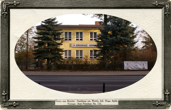 Text auf der Karte: Gruss aus Bornim Gasthaus am Walde, Inh. Hugo Splitt. Fernspr. Amt Potsdam No. 722.