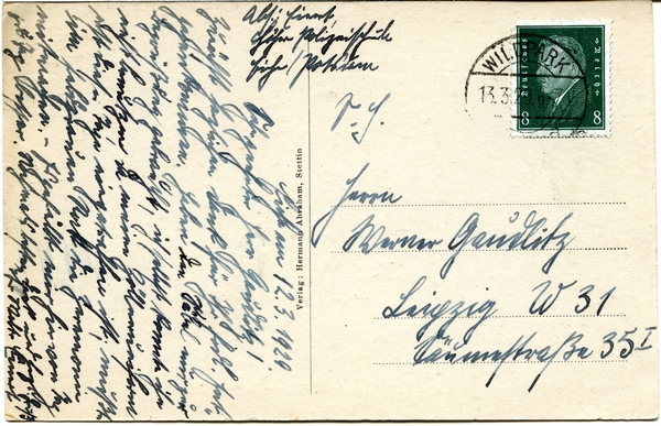 Text auf der Karte: Höhere Polizeischule Eiche b. Wildpark - Wirtschaftsgebäude Entstehungszeit der Karte: gestempelt 13.03.1929 Kartenart: Ansichtskarte Kartentechnik: Kupfertiefdruck Verlag: Verlag: Hermann Abraham, Stettin Gelaufen/ungelaufen: gelaufen Zustand (I=sehr gut bis V=mangelhaft): I Häufigkeit (h=häufig bis rrr=sehr selten): h Heutige(r) Straßenname(n): Kaiser Friedrich-Straße