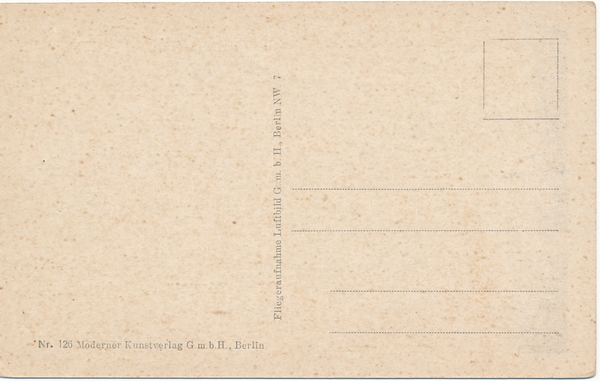 Text auf der Karte: Fliegeraufnahme Potsdam Neues Palais Entstehungszeit der Karte: ca. 1923 Straße und Hausnummer: Park Sanssouci Kartenart: Ansichtskarte Kartentechnik: Kupfertiefdruck Verlag: Nr. 126 Moderner Kunstverlag G. m. b. H., Berlin | Fliegeraufnahme Luftbild G. m. b. H., Berlin NW. 7 Gelaufen/ungelaufen: ungelaufen Zustand (I=sehr gut bis V=mangelhaft): I Häufigkeit (h=häufig bis rrr=sehr selten): h