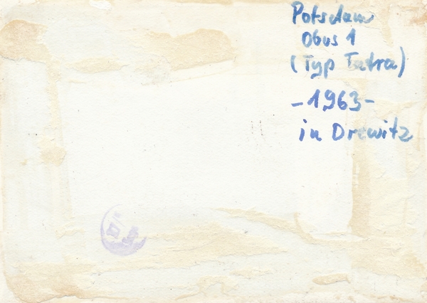 Text auf der Karte: O-Bus 1 (Typ SKODA 8 Tr) in Drewitz Entstehungszeit der Karte: ca. 1963 Straße und Hausnummer: Alt Drewitz 26 Kartenart: Foto Kartentechnik: SW-Foto Verlag: unbekannt Gelaufen/ungelaufen: ungelaufen Zustand (I=sehr gut bis V=mangelhaft): II Häufigkeit (h=häufig bis rrr=sehr selten): h
