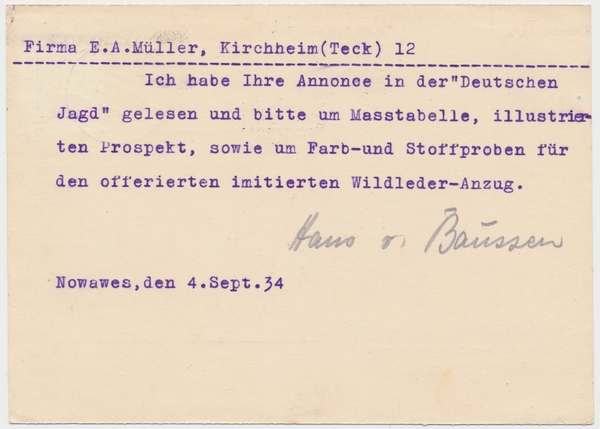 Text auf der Karte: Geschäftskarte der Bausophon-Gesellschaft m. b. H. Fabrik elektro-medizinischer Apparate Entstehungszeit der Karte: gestempelt Nowawes 04.09.1934 Straße und Hausnummer: Friedrichstraße (Babelsberg) 35 Kartenart: Geschäftskarte Kartentechnik: Sw-Druck Verlag: unbekannt Gelaufen/ungelaufen: gelaufen Zustand (I=sehr gut bis V=mangelhaft): I Häufigkeit (h=häufig bis rrr=sehr selten): h Heutige(r) Straßenname(n): Garnstraße
