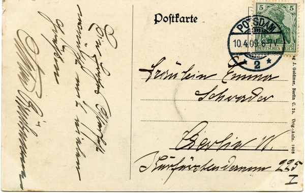 Entstehungszeit der Karte: gestempelt Potsdam 10.04.1909