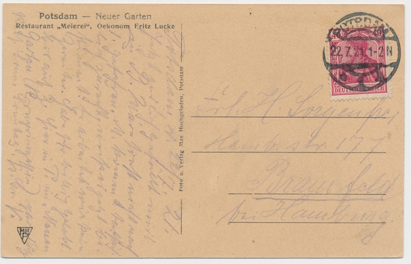 Entstehungszeit der Karte: gestempelt Potsdam 22.07.1921
